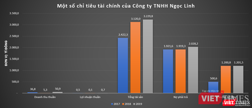 Tính đến cuối năm 2019, báo cáo riêng lẻ của Ngọc Linh cho thấy quy mô tổng tài sản của doanh nghiệp này đạt 3.229,8 tỉ đồng, song có tới 2/3 được tài trợ bởi nguồn vốn nợ phải trả.