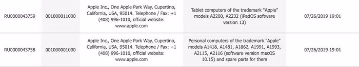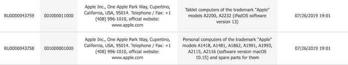 Hai mẫu máy tính bảng mới nhất được mới được đăng ký trên cơ sở dữ liệu của Ủy ban Kinh tế Á-Âu (EEC) có số hiệu modul A2200 và A2232. Hai mẫu này sẽ sử dụng hệ điều hành iPadOS. Mặc dù trong danh sách này không có thêm thông tin nào nhưng có thể một trong hai mẫu là chiếc iPad 10,2 inch được đồn đại là sắp được ra mắt để thay thế mẫu iPad 9,7 inch.