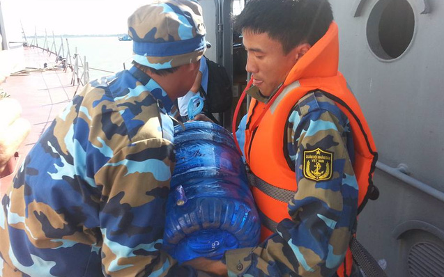 Các chiến sỹ bốc nước thực phẩm lên tàu cứu hộ cứu nạn số hiệu 211 của Hải đội 137 Vùng 1 hải quân chuẩn bị quay trở lại tìm kiếm. Các chiến sỹ trên tàu cho biết, hiện nay gió biển đang ở cấp 4, 5. Ngoài 2 tàu của hải đội 137 vùng 1 hải quân thì còn rất nhiều tàu của các lực lượng chức năng khác cùng tàu cá của ngư dân tham gia tìm kiếm máy bay mất tích.