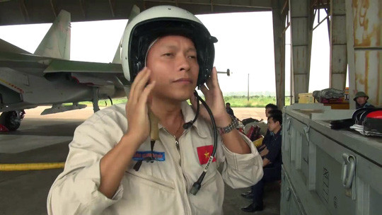 Phi công Trần Quang Khải trong một lần chuẩn bị trước khi bay huấn huyện năm 2013.