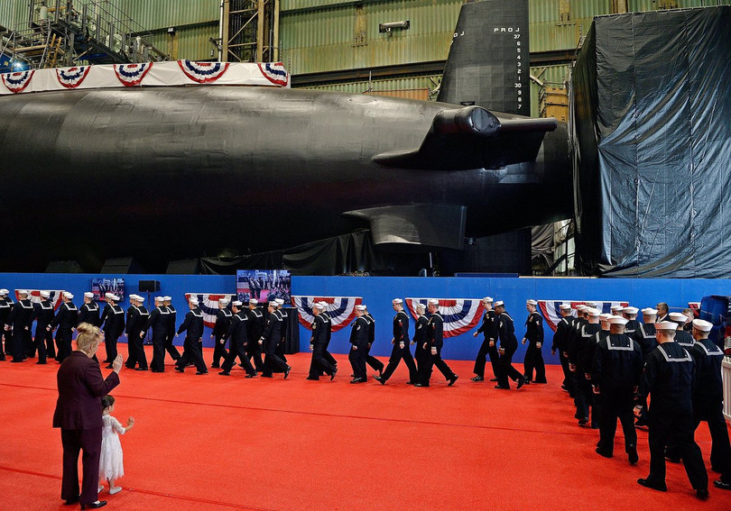 | Lễ hạ thủy tàu ngầm nguyên tử Delaware (SSN791). Ảnh: Hải quân Mỹ. |