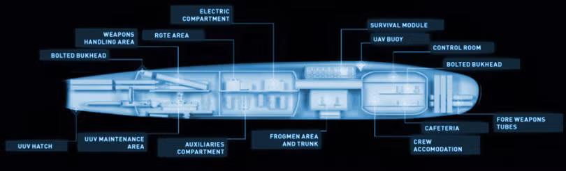 Theo Naval Group, toàn bộ hệ thống kiểm soát vũ khí, điều khiển hỏa lực, giám sát và trinh sát vùng biển ngầm, hệ thống điều hành và kiểm soát các bộ phận trên tàu ngầm được tích hợp với hệ thống trí tuệ nhân tạo, giảm thiểu đến mức tối đa các hoạt động thông thường. Điều này cho phép thủy thủ đoàn tập trung cao độ vào những nhiệm vụ có ý nghĩa lớn, tiến hành các hoạt động kỹ chiến thuật phức tạp trong khi hoạt động trong lòng nước kẻ thù.