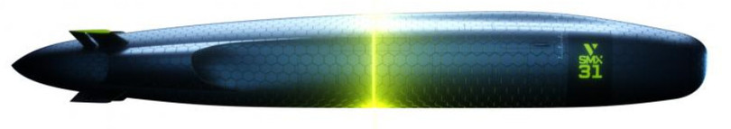 | Mô hình tàu ngầm diesel - điện khái niệm mới SMX-31. Hai chân vịt kín và không boong thượng. Ảnh: Covert Shores. |