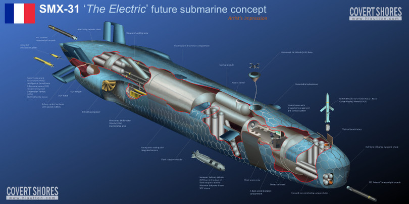 SMX-31 đây hoàn toàn là tàu ngầm diesel điện hai động cơ kín để tránh tiếng ồn. Ngoài những vũ khí thông thường, tàu ngầm còn được biên chế các máy bay không người lái UAV, có thể phóng lên từ độ sâu 100m, và các tàu ngầm không người lái UUV. Trong tàu có một khoang lớn chứa các phương tiện không người lái, tăng khả năng nhận biết tình hình và thực hiện các cuộc tấn công theo tọa độ mục tiêu được phát hiện.