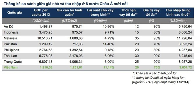 Báo cáo này phân tích, căn cứ số liệu thống kê như bảng trên có thể thấy ngay rằng, với mức thu nhập thấp như vậy (trừ Malaysia) thì một cặp vợ chồng cùng góp hết tiền lại với nhau vẫn không thể mua nổi một căn hộ chung cư thương mại diện tích 50m2.