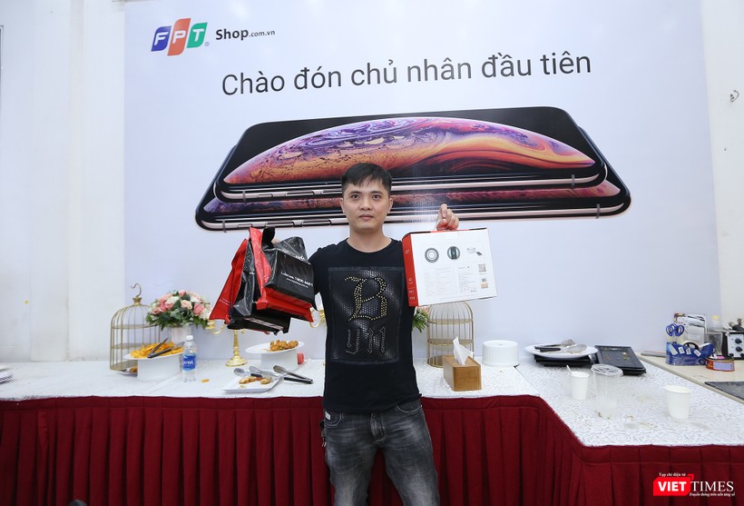 Anh Nguyễn Vũ Việt, làm việc tại FPT Software là người đầu tiên sở hữu iPhone XS chính hãng. Anh mua phiên bản XS 64 GB với giá 28,9 triệu đồng sau khi đã được ưu đãi giảm giá 2 triệu đồng