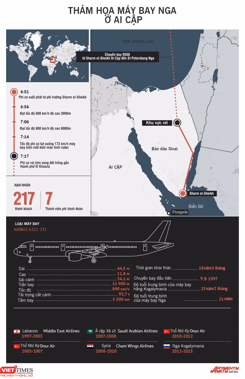 Các chuyên gia an toàn bay của hãng "Kogalymavia" tuyên bố: chiếc Airbus А321, gặp tai nạn trên bầu trời bán đảo Sinai không thể rơi đột ngột từ trên không do nguyên nhân hỏng hóc các bộ phận hoặc trang thiết bị. Hoàn toàn có khả năng cấu trúc máy bay đã bị phá vỡ.