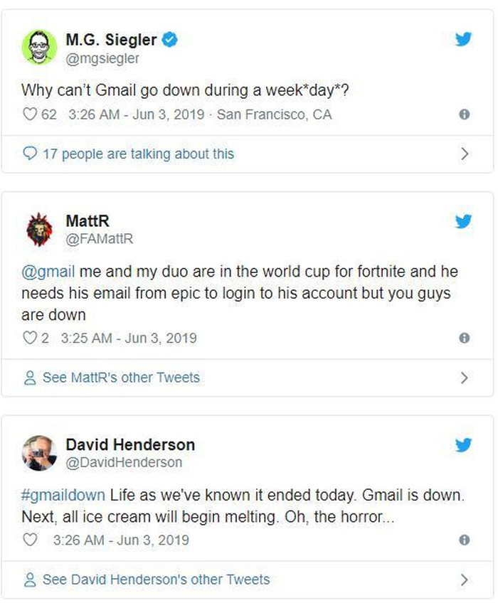 Cũng có rất nhiều khiếu nại rằng Gmail không hoạt động.