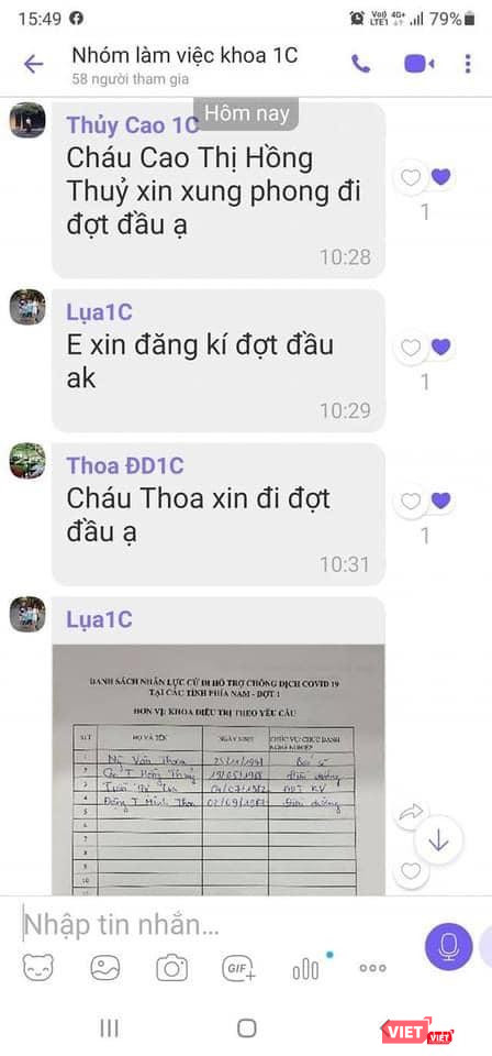 Trong tin nhắn trao đổi của 2 vợ chồng, người chồng nói “Anh thì chắc chắn rồi, nhà 1 người đi thôi. Anh đi rồi thì em sẽ không trong diện đi nữa đâu. Khoa anh có kế hoạch rồi”. Tuy nhiên, chị vợ vô cùng muốn vào miền Nam để chống dịch nên đã trả lời: “Anh ở nhà trông con cho em đi. Mình cùng đi được không bố?”. Mặc dù cả 2 vợ chồng đều xác định khi đi chống dịch, khả năng lây nhiễm, mắc COVID-19 rất cao nhưng họ vẫn kiên quyết muốn đăng ký vào miền Nam chống dịch, góp một phần sức lực nhỏ bé của mình để đầy lùi dịch bệnh.