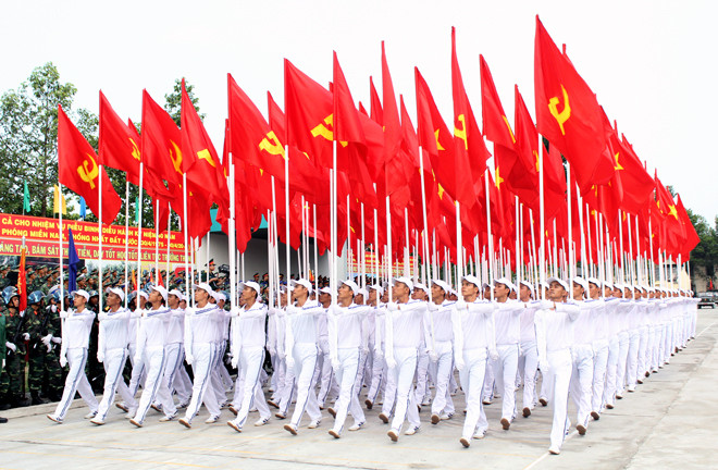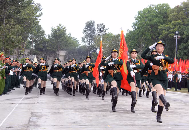 Đoàn diễu binh, diễu hành gồm nhiều khối với sự tham gia của các lực lượng: quân đội, công an, dân quân tự vệ, sinh viên, học sinh...