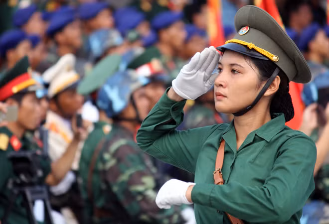 Có khoảng 1/3 người tham gia diễu binh là nữ. Họ nằm trong các đội hình "Nữ du kích miền Bắc", "Nữ du kích miền Nam", "Nữ sĩ quan Bộ tư lệnh thông tin"...