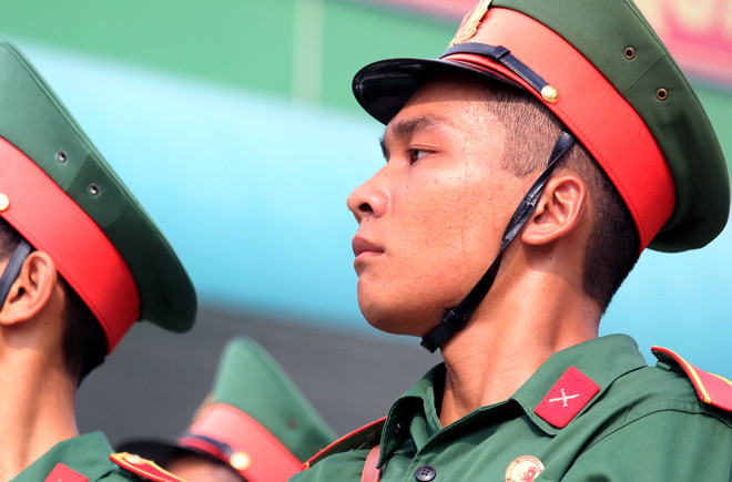 "Việc luyện tập trong thời gian dài, dưới nắng nóng khiến nhiều chiến sĩ đen sạm. Trong thời gian luyện tập, họ phải đứng nghiêm không cử động, trao đổi hoặc đi vệ sinh cá nhân", một sỹ quan thuộc Quân khu 7 chia sẻ.