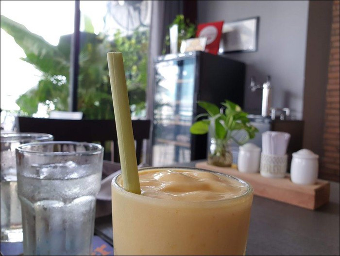 Một quán ăn dùng ống hút cỏ thay cho ống hút nhựa - Ảnh: H.Đ