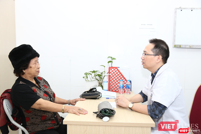 | Các bác sĩ khám bệnh và tư vấn, giúp người dân phòng ngừa đột quị |
