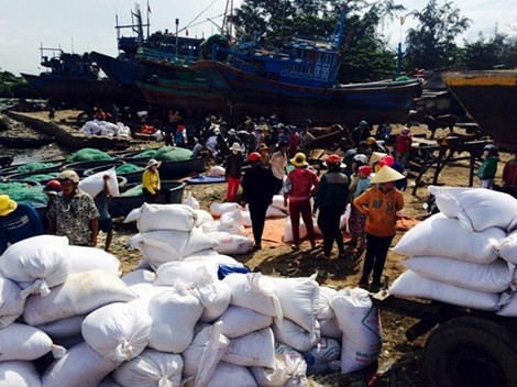 Theo bà Thọ, sáng 7/7, làm việc với Đồn Biên phòng 456, thị xã La Gi, ông Hoàng Văn Phong, thuyền trưởng tàu Hải Trường 36, cho biết khi vừa gặp nạn họ chỉ quyết định cho ngư dân một số gạo để tránh tàu chở nặng bị đắm. Trong hai ngày 6 và 7-7 khi con tàu đã an toàn, họ đã đóng khoang không cho gạo nữa nhưng đã bị hàng trăm tàu thuyền lớn nhỏ tiếp cận hôi của trước sự bất lực của thủy thủ đoàn.