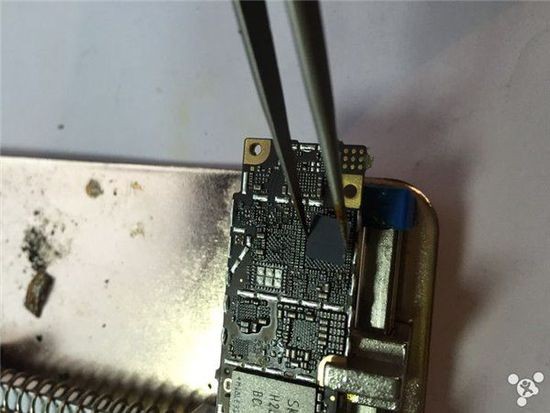 Tiếp tục cậy nắp phía trên của CPU. Đây là phần hoàn toàn có thể thay thế được. Nhưng riêng phần dưới phải thật cẩn thận. Bằng không, khi CPU gặp hỏng hóc, chúng ta sẽ phải thay cả Touch ID lẫn cặp Baseband đi kèm.