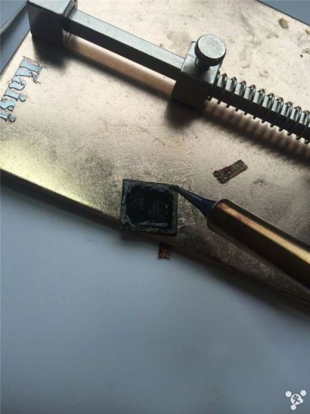 Hàn bi thiếc lên CPU, để lát sau gắn vào bo mạch mới.