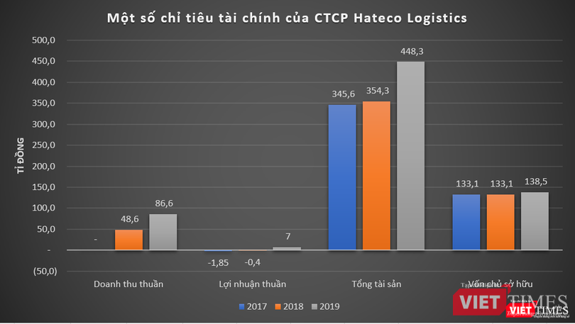 Tại ngày 31/12/2019, quy mô tổng tài sản của Hateco Logistics đạt 448,3 tỉ đồng, vốn chủ sở hữu ở mức 138,5 tỉ đồng.