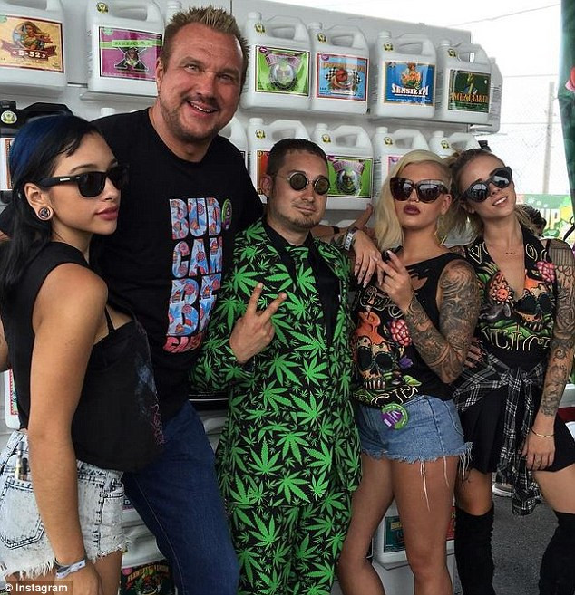 Nhóm phụ nữ hậu cung của Mike "Lớn: đang ăn kẹo bông trong một sự kiện quảng cáo các sản phẩm hỗ trợ người trồng cần sa.