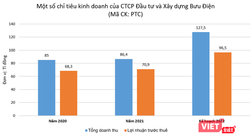 Năm 2022, PTC đặt mục tiêu doanh thu đạt 127,5 tỉ đồng, lợi nhuận trước thuế 96,5 tỉ đồng, trả cổ tức dự kiến từ 15 – 20%.
