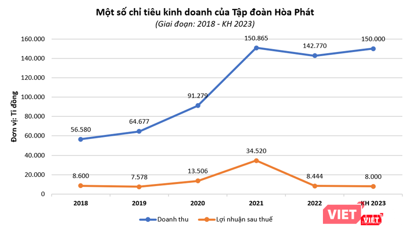 Theo đó, ban lãnh đạo HPG lên kế hoạch doanh thu toàn tập đoàn năm 2023 đạt 150.000 tỉ đồng và lợi nhuận sau thuế đạt 8.000 tỉ đồng, tương ứng với biên lợi nhuận là 5,3%.
