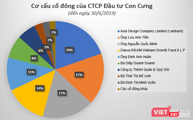 Tính đến ngày 30/6/2019, quy mô vốn điều lệ của Con Cưng đạt 26,25 tỷ đồng. Trong đó, ông Nguyễn Quốc Minh và Lưu Anh Tiến đều chiếm tỷ lệ sở hữu khá tương đồng, đạt 17,28%. Cổ đông lớn nhất của Con Cưng là Asia Design Company Limited (Lombard) nắm giữ hơn 516 nghìn cổ phiếu, tương đương 19,65% vốn điều lệ.