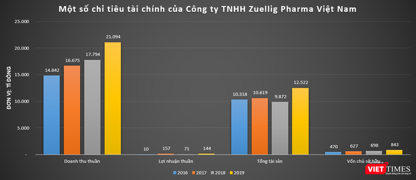 Dữ liệu của VietTimes cho thấy, Zuellig Pharma Việt Nam trong giai đoạn 2016 – 2019 liên tục ghi nhận sự tăng trưởng về doanh thu. Năm 2019, công ty này ghi nhận doanh thu ở mức 21.094 tỉ đồng, báo lãi 144,2 tỉ đồng, tương ứng với biên lợi nhuận chỉ vỏn vẹn ở mức 0,7%./.