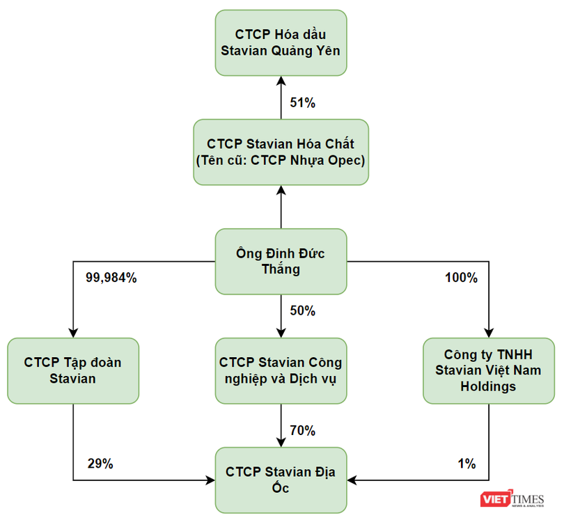 Trở lại với nhà sáng lập Stavian Chemical Đinh Đức Thắng, vị doanh nhân sinh năm 1978 còn đang đứng tên đại diện cho loạt doanh nghiệp khác như: CTCP Stavian Địa ốc (Stavian Land), CTCP Tập đoàn Stavian (Stavian Group), Công ty TNHH Stavian Việt Nam Holdings (Stavian Việt Nam Holdings), hay CTCP Stavian Công nghiệp và Dịch vụ.