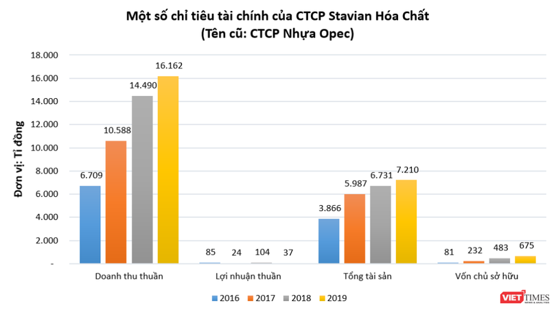 Như VietTimes từng đề cập, giai đoạn 2016 – 2019, Stavian Chemical (hay Nhựa Opec) liên tục tăng trưởng mạnh về doanh thu, vượt trội hơn hẳn so với nhiều “ông lớn” cùng ngành đang niêm yết trên sàn như Nhựa An Phát Xanh (AAA), Nhựa Tiền Phong (NTP) hay Nhựa Bình Minh (BMP).