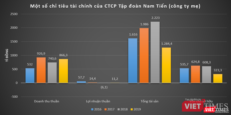 Dữ liệu của VietTimes cho thấy, trong giai đoạn 2016 - 2019, Nam Tiến Group (công ty mẹ) chỉ báo lỗ một lần vào năm 2018. Tới năm 2019, doanh thu thuần của Nam Tiến Group đạt 866,3 tỉ đồng, tăng 17% so với năm trước; lãi thuần ở mức 11,2 tỉ đồng, tương ứng với biên lợi nhuận 1,3%.
