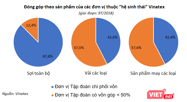 Trong đó, các "Đơn vị Tập đoàn chi phối vốn" (bao gồm: các đơn vị phụ thuộc, công ty 100% vốn Vinatex, công ty có vốn Vinatex trên 50%) đạt 15.945 tỷ đồng; các "Đơn vị Tập đoàn có vốn góp dưới 50%" ghi nhận giá trị cộng dồn là 20.913 tỷ đồng.