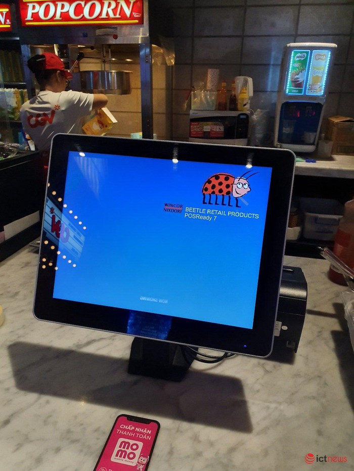 Để mua vé, chị Thảo phải đến trực tiếp rạp CGV bên trong một tòa nhà trên đường Trần Quang Khải (Q.1, TP.HCM). Tại đây, thời điểm 15 giờ hôm nay, các máy tính dùng để bán vé xem phim và các loại thức ăn đồ uống ở đây không hoạt động được.