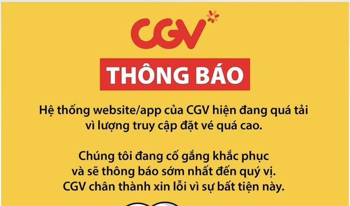 Thông báo trên website của CGV. Ảnh chụp màn hình