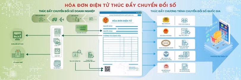Đồng thời, hóa đơn điện tử cũng góp phần giúp việc triển khai thương mại điện tử được hoàn thiện hơn từ đặt hàng trên mạng, giao hóa đơn điện tử qua mạng và thúc đẩy thanh toán không dùng tiền mặt. Việc sử dụng hóa đơn điện tử giúp giảm tối đa việc sử dụng giấy in, góp phần bảo vệ môi trường.