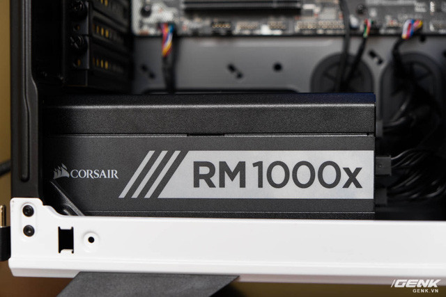 Trái tim của toàn bộ hệ thống nằm ở PSU. Bộ nguồn được sử dụng chính là Corsair RM1000X, một trong những PSU uy lực nhất hiện nay, với chứng chỉ Gold mang lại khả năng chuyển hóa dòng điện rất tốt.