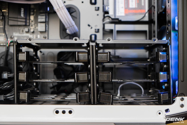 Thiết kế không gian phía bên trong vỏ case "thoáng", khe đi dây linh hoạt khiến tổng thể gọn gàng, có thể lắp thêm cả tản nhiệt nước custom.