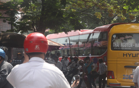 Tại bến xe Giáp Bát, lượt xe chở khách từ các tỉnh dồn về tăng hơn nhiều so với ngày thường. Liên tục, tại sân trả khách của bến xe Giáp Bát lúc nào cũng có xe vào trả khách.