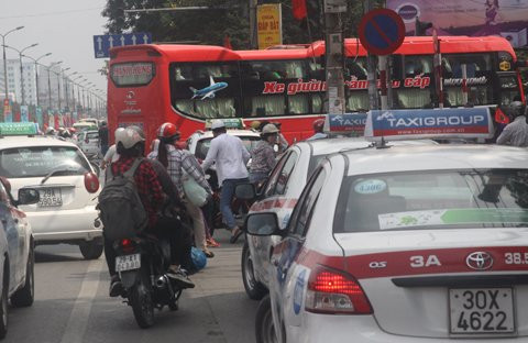 Rất nhiều xe ngay sau khi trả khách xong đã quay đầu, chấp nhận đi xe không về để tiếp tục đón khách về Hà Nội.