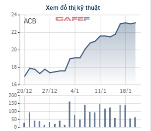 Có thể giá cổ phiếu đang ở mức cao nên 1 nhà đầu tư nước ngoài đã lên kế hoạch chốt lời. Theo công bố mới đây, The CH/SE Asia Investment Holdings (Singapore) PTE. Ltd - nơi thành viên Hội đồng quản trị của ACB là ông Dominic Scriven làm thành viên Ban Kiểm soát - có kế hoạch bán toàn bộ 539.330 cổ phiếu ACB với phương thức thỏa thuận và khớp lệnh trong thời gian từ 20/1 đến 20/2.