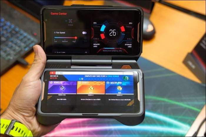 Phụ kiện giúp mở rộng thêm một màn hình phía dưới cho ROG Phone. Có thêm khe cắm thẻ nhớ và tăng dung lượng pin.
