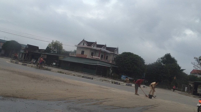Sau khi nhận được phản ánh từ người dân về tình trạng trên hai chiến sĩ CSGT đã tới địa điểm để xem tình hình. Nhằm đảm bảo giao thông cho người đi đường được an toàn hai chiến sĩ CSGT đã vào nhà dân ở bên đường mượn dụng cụ dọn vệ sinh để ra dọn dẹp số đá sỏi rơi vãi trên đường.