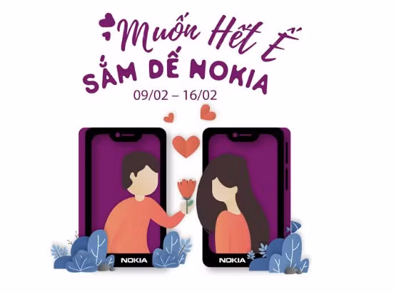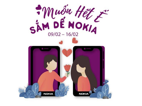 “Muốn hết ế, sắm dế Nokia” là chương trình khuyến mãi mà HMD Global đang thực Việt Nam nhân dịp Valentine. Theo đó, từ ngày 9/2-16/2, khách hàng mua điện thoại Nokia 5.1 Plus và 6.1 Plus sẽ được tặng voucher “Nokia Valentine” trị giá 200k. Mỗi voucher này tương ứng với 2 vé xem phim tại các cụm rạp CGV, thưởng thức cà phê và ăn bánh tại khách sạn Sheraton và chuỗi cửa hàng Highland. Khách hàng cũng có thể sử dụng voucher này để ăn uống tại nhà hàng Gogi hoặc sử dụng để mua sắm tại các cửa hàng của Canifa và Vascara.