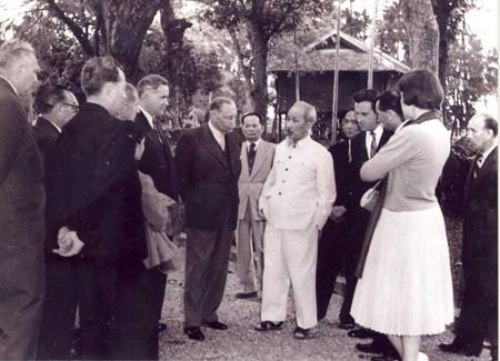 Chủ tịch Hồ Chí Minh tiếp đoàn đại biểu QH Tiệp Khắc tại nhà sàn 1960