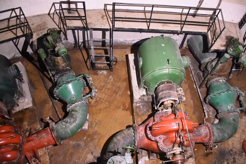 Khu vực trạm bơm nước còn nguyên vẹn, nhưng bị cài đặt nhiều mìn và vật liệu nổ