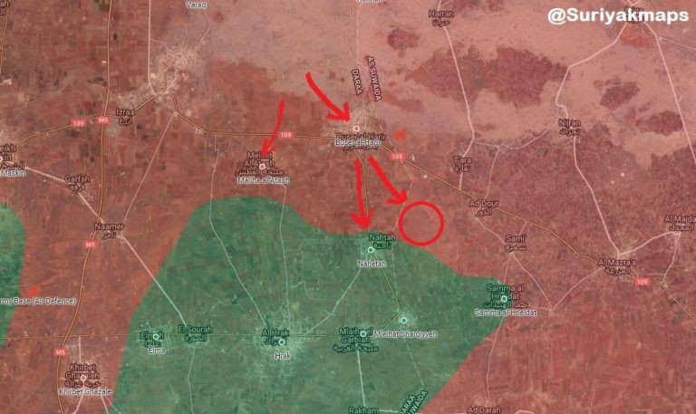 Quân đội tấn công chiến tuyến của các tay súng thuộc tổ chức Hayat Tahrir al-Sham (HTS, nguyên Jabhat al-Nusra, al-Qaeda Syria) và các nhóm chiến binh Quân đội Syria tự do (FSA) phía tây làng Nahitah. Sau khi giành toàn quyền kiểm soát làng Nahitah, các đơn vị quân đội Syria sẽ tiến công vào làng al-Hirak.