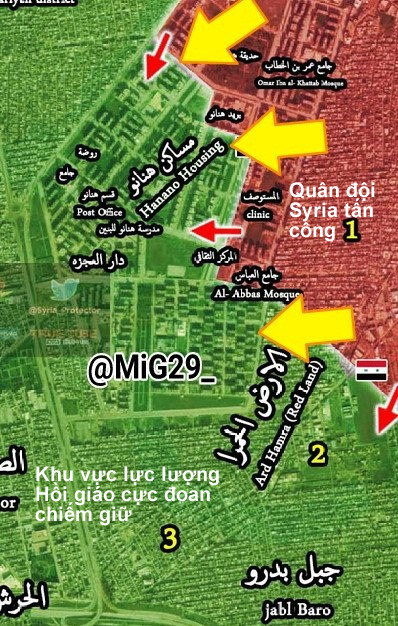 Al Masdar News dẫn nguồn tin quân sự tại Aleppo cho biết, lực lượng vũ trang Syria giành được hầu hết Hanano, nhưng trong một số khu phố của quận, các tay súng chiến binh Fatah Halab và các nhóm cực đoan thánh chiến khác co cụm với quân số đông, chống trả quyết liệt.