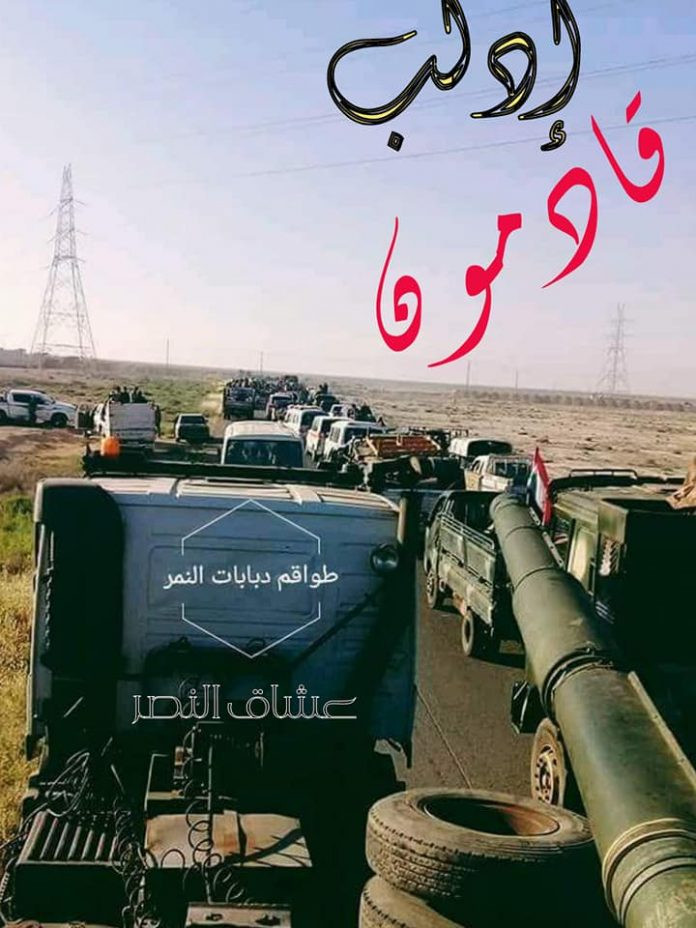 | Lực lượng Tiger hành quân chiến đấu về Hama và Idlib. Ảnh truyền thông Tiger |