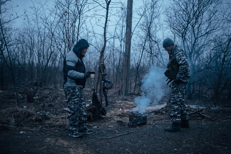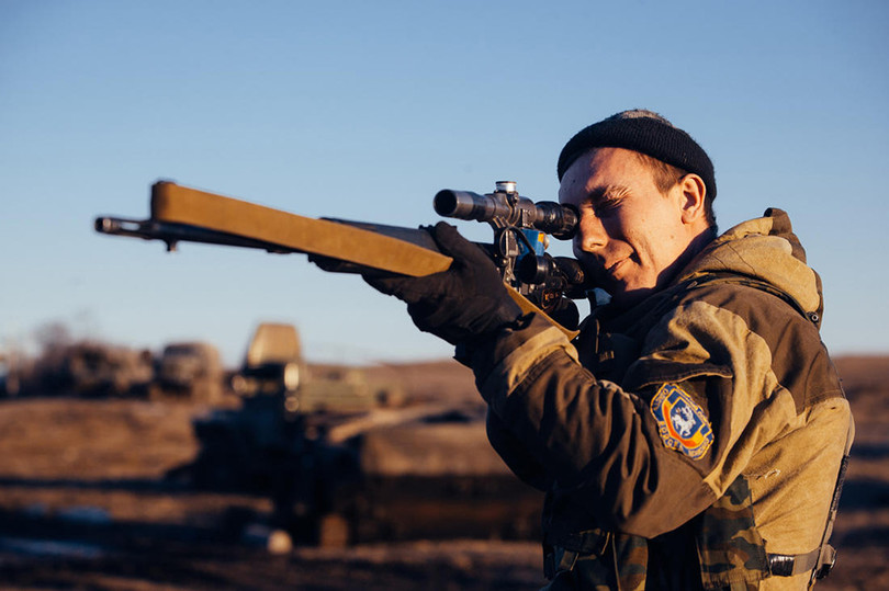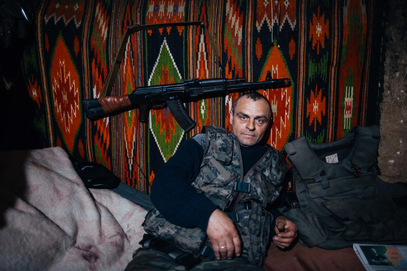 Trong 1 căn hầm, một dân quân đang lắp đạn vào dây băng PKMS, có khi sắp tới không có thời gian