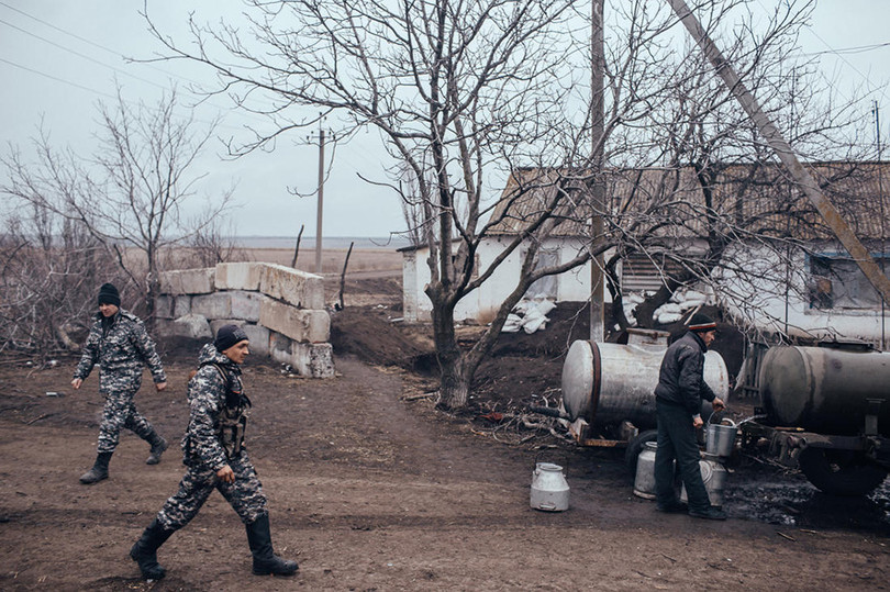 Mìn chống tăng được đặt trên tuyến đường Debaltsevo-Artemovsk.