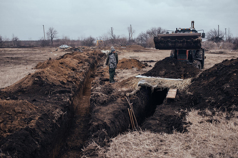 Xậy dựng hầm hào công sự có nắp đậy bằng máy xúc - ủi, điều khó khăn khi đang chiến sự